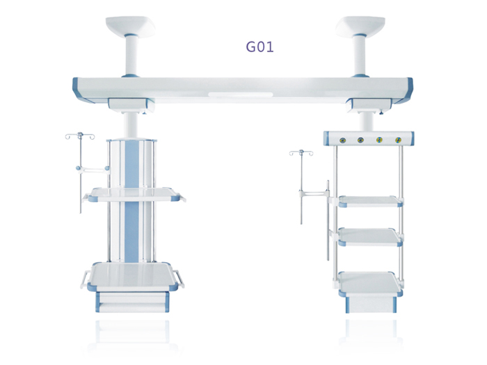 其特点在于合理的干湿分离结构,湿段配置升降灵活的输液架和输液泵架,可升降调节的医疗监护仪器平台。在干湿段分别将氧气、空气、吸引、强弱电、网络输入终端配置在医护人员抬手可及的塔体上。湿段采用悬臂结构,提高了治疗空间,移动旋转部分采用机械制动防漂移,桥架中央配置照明治疗灯。为临床医疗提供了照明解决方案,另外还可根据您的要求选配通信传呼、监控、可视电话、背景音乐以及教学和远程会诊系统。